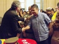 O momento teve um leve aperto de mão e aconteceu no Palácio da Redenção, onde o corpo do coronel foi velado. Os ex-aliados romperam a aliança política que durou quase quatro anos, no último mês de fevereiro,