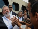 O presidente Luiz Inácio Lula da Silva atendeu nesta sexta-feira (19) ao chamado de uma caravana de petistas de Osasco (SP) e Carapicuíba (SP) ao sair do Centro Cultural Banco do Brasil (CCBB), sede provisória da Presidência da República durante a reforma do Palácio do Planalto. Os petistas chegaram por volta das 12h30 e em coro gritavam o nome do presidente. Ao concluir uma reunião do Programa de Aceleração do Crescimento (PAC), o presidente não usou sua saída privativa e foi até os simpatizantes, tirou fotos e deu autógrafos. (Foto: Antônio Cruz/ABr)