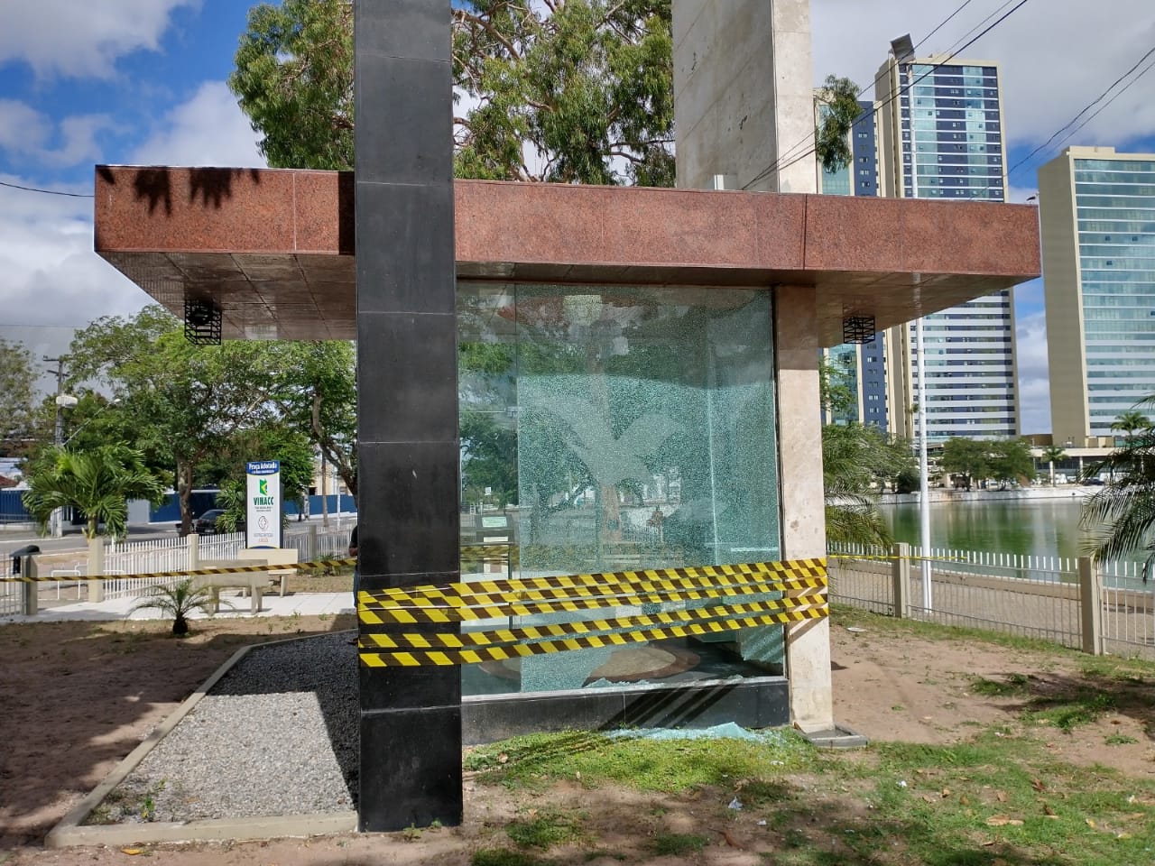 O vereador Alexandre do Sindicato (PSD) esteve na manhã deste domingo, 20, no Monumento à Bíblia, em Campina Grande, que fica localizado às margens do Açude Velho, para ver de perto o resultado de um ataque a bomba que destruiu parte do equipamento na noite deste sábado. Câmeras de segurança registraram a ação criminosa, que ocorreu por volta das 22h30.