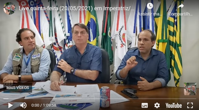 “Não pode falar [o nome do medicamento]. O Brasil é o país da hipocrisia, a começar por essa CPI. Eu tinha vontade de voltar a ser deputado para falar o que penso dessa CPI” disse. “Como presidente da República não pega bem eu falar, em especial do presidente da CPI. Um vexame. Ele foi realmente bem intitulado pelo senador Flávio Bolsonaro na semana passada”, afirmou.
