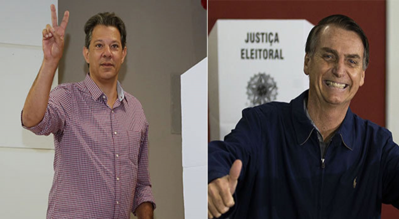 O deputado federal Jair Bolsonaro, candidato do PSL à Presidência da República, e o ex-prefeito de São Paulo Fernando Haddad, do PT, vão disputar o cargo no próximo dia 28 de outubro, data do segundo turno das eleições 2018.