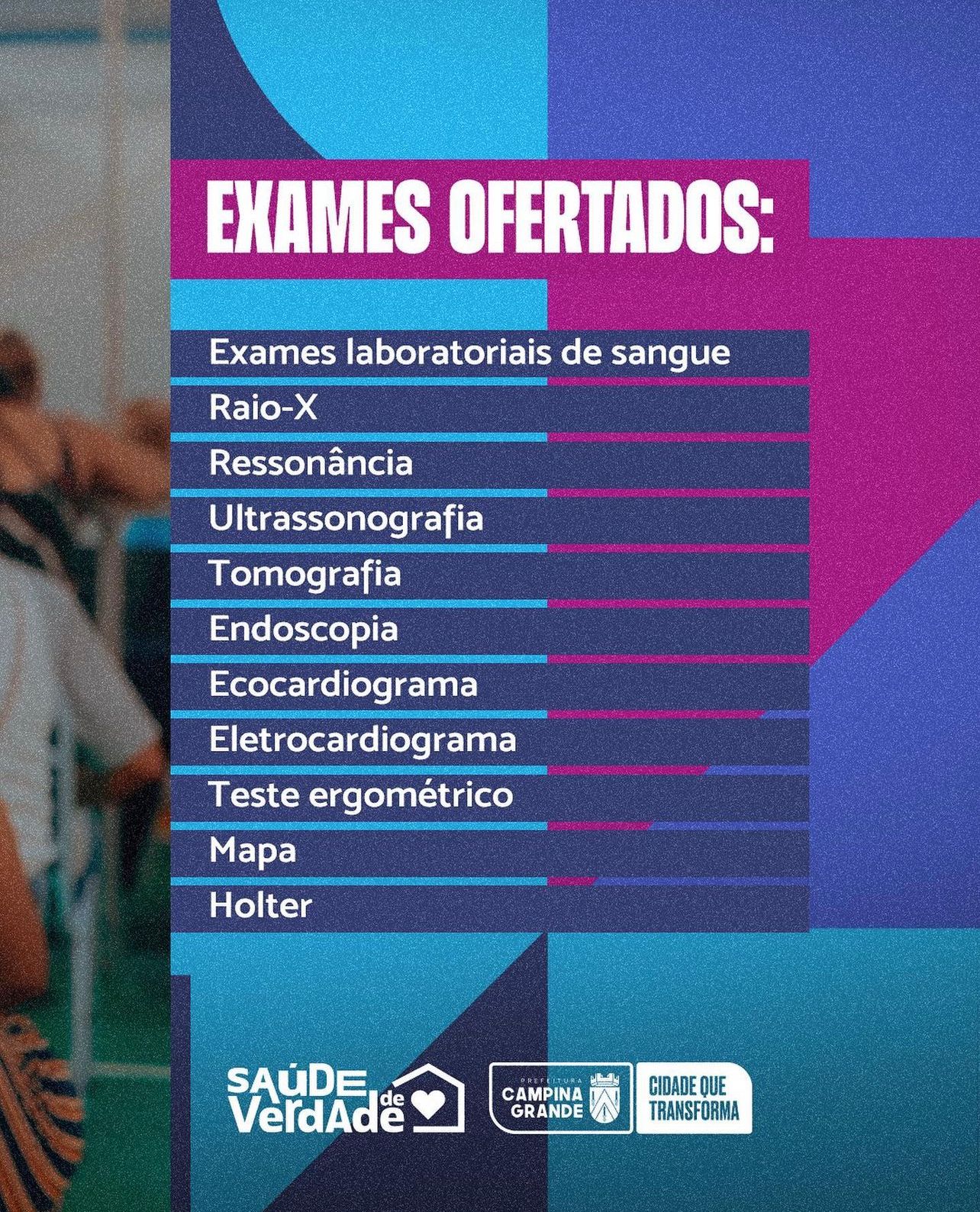 Esses são os exames que nossos pacientes vão poder fazer lá, no local, no Ginásio “O Meninão”: