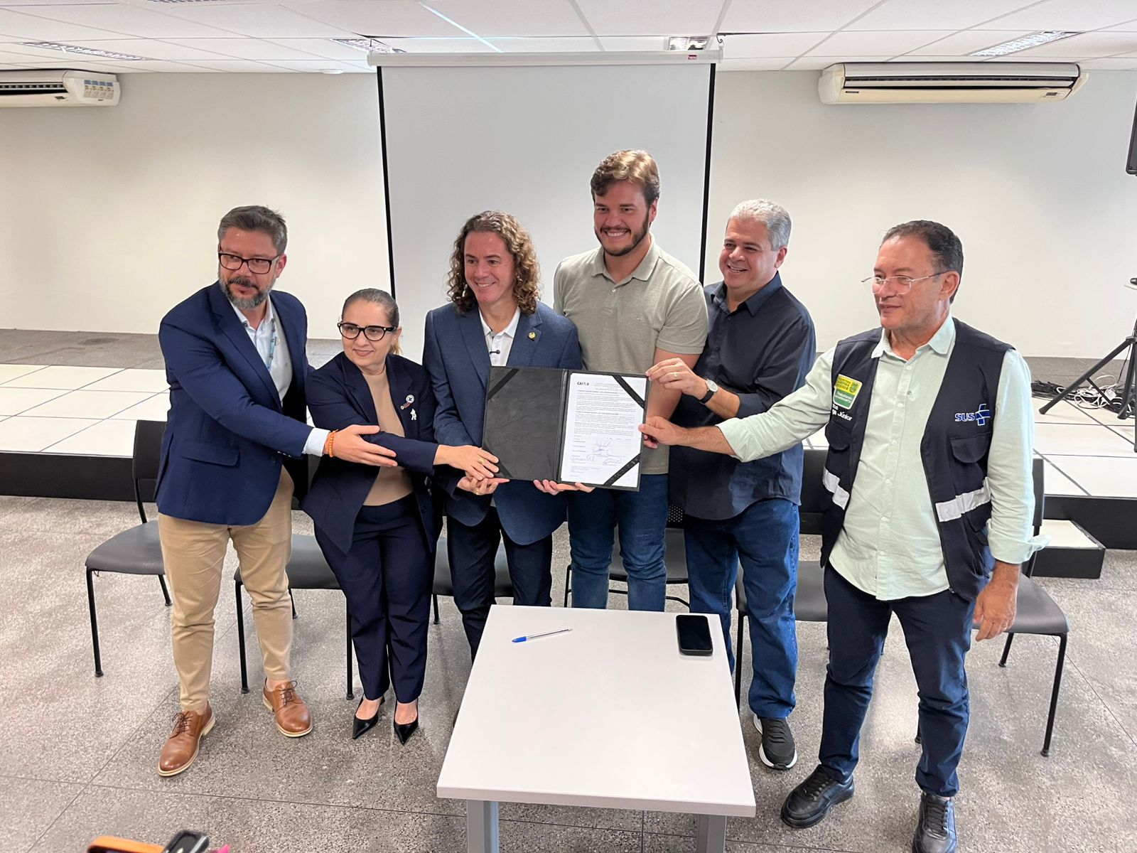 O prefeito Bruno Cunha Lima (União Brasil) participou, nesta segunda-feira (13), do ato de assinatura dos Termos de Compromisso para a construção da Policlínica Regional de Campina Grande. A solenidade foi realizada na sede da Caixa Econômica Federal e contou com a presença do senador Veneziano Vital do Rêgo (MDB), responsável pela articulação política junto ao Governo Federal para viabilizar o investimento.
