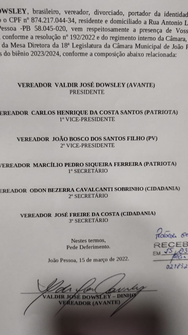 Nesta terça-feira (15), a Câmara Municipal de João Pessoa (CMJP) alterou a Lei Orgânica da Casa e reelegeu a Mesa Diretora que vai comandar a casa no biênio 2023-2024.