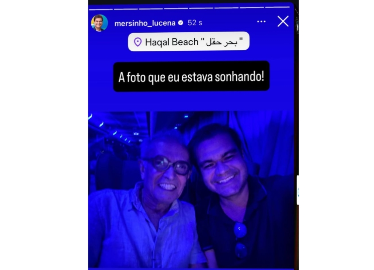 Após viajar até a Arábia Saudita, o deputado federal Mersinho Lucena usou seu perfil numa rede social para postar o registro do encontro com seu pai, o prefeito de João Pessoa, Cícero Lucena.