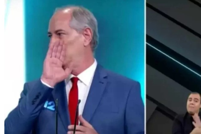 No debate, Ciro Gomes, que estava ao lado direito de Bolsonaro, colocou a mão sobre a boca e falou algo enquanto a senadora Soraya Thronicke (União Brasil) se defendia de algumas acusações que o presidente fez anteriormente.