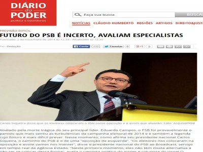 Ainda abalado pela morte trágica do seu principal líder, Eduardo Campos, o PSB foi provavelmente o partido que mais sentiu as turbulências da campanha eleitoral de 2014 e é também a legenda cujo futuro é mais difícil prever. Neste momento, como afirma seu presidente nacional Carlos Siqueira, o caminho do PSB é o de uma “oposição de esquerda”. “Os eleitores nos colocaram na oposição e assim vamos nos manter”, disse o presidente nacional do PSB ao Broadcast, serviço em tempo real da Agência Estado.