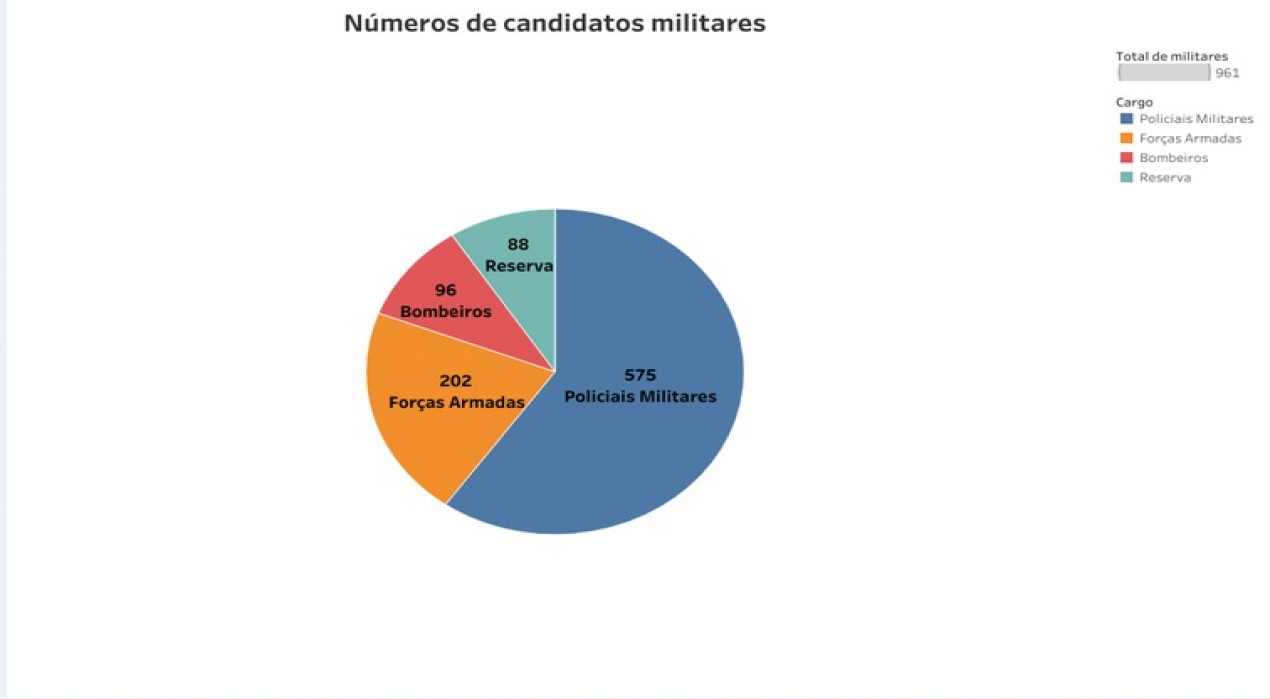 Temas ligados à lei e à ordem, como segurança pública e combate à corrupção, fortalecem as candidaturas de militares ao longo das últimas eleições nos mais distintos cargos. Pelos dados do Tribunal Superior Eleitoral (TSE), 961 candidatos militares disputam as eleições neste ano.