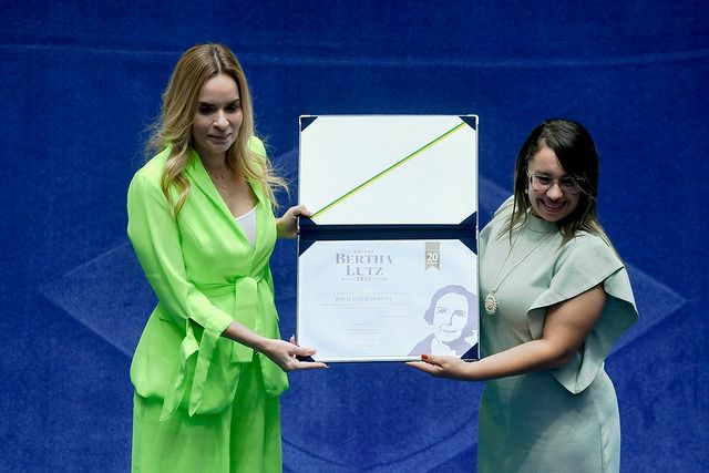 Após dois anos sem a entrega do prêmio Berta Lutz em razão da pandemia de Covid, 21 mulheres foram premiadas em sessão solene no Senado. A condecoração é o reconhecimento das agraciadas em defesa dos direitos da mulher e as questões de gênero no Brasil. Além de homenagear a farmacêutica bioquímica Maria da Penha, a cientista Margareth Dalcomo foi agraciada pelo desenvolvimento de vacinas contra Covid-19 no país.