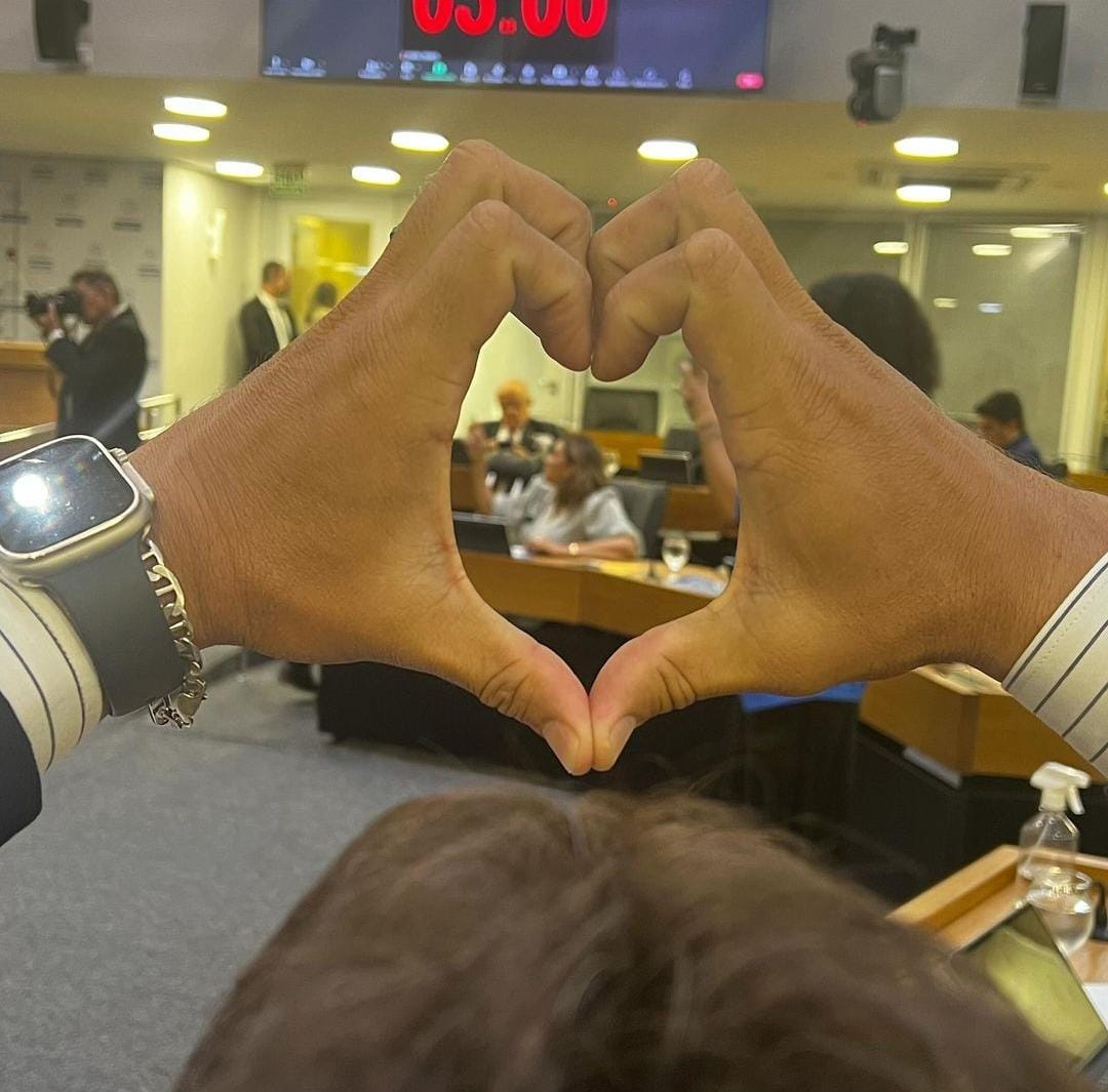 Em uma postagem feita nesta terça-feira (05), Walber aparece fazendo um coração com as mãos e dentro ele enquadrou a deputada Cida. Na legenda, novamente ele utiliza a frase.