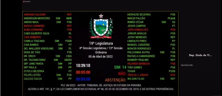Logo depois a votação segue normalmente e o som do microfone do referido deputado é cortado.