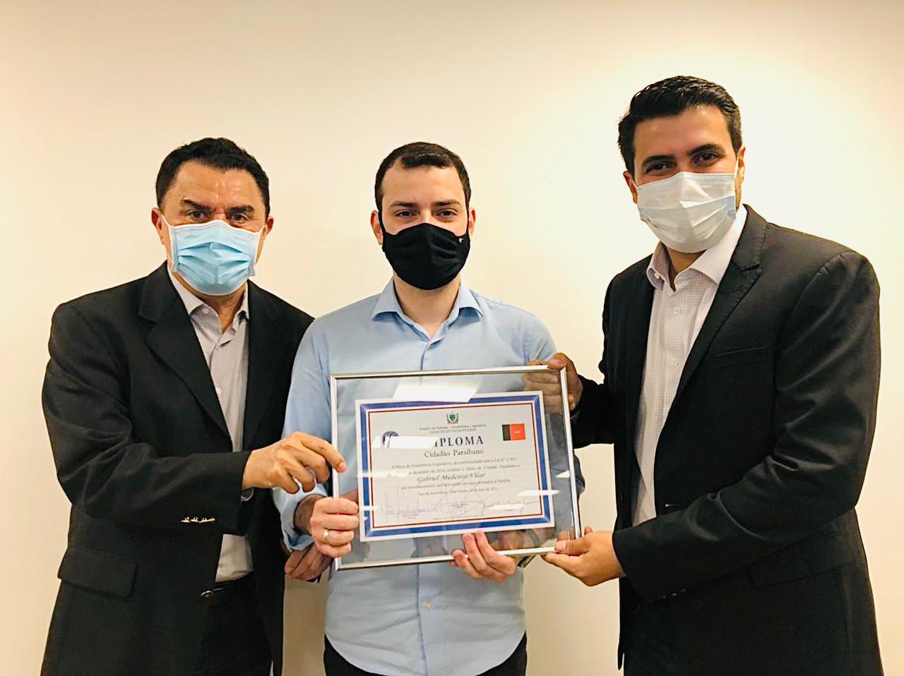 Ele acrescentou que é filho natural de Brasília-DF, mas tem raízes familiares em Santa Luzia. “Quero agradecer ao deputado estadual Wilson Filho por essa homenagem tão especial. Me considero filho da Paraíba e o título agora oficializou esse sentimento”, disse Gabriel Medeiros.