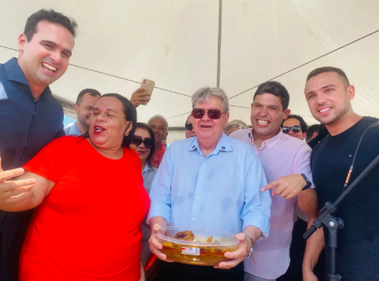 Bem-humorado, João recebeu o gesto com sorriso, enquanto apoiadores aproveitaram o momento para reforçar, em tom irônico, que o governador “come galinha e entrega obra”, destacando a execução de investimentos no estado.