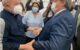 Na chegada do governador e do ex-presidente, os dois se encontram, conversam amistosamente e trocam o abraço.