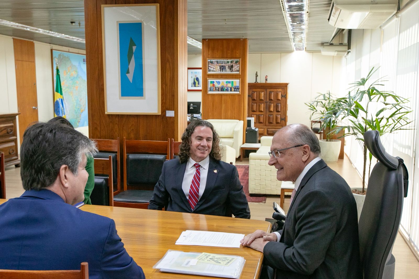 O Líder da Maioria no Senado Federal, Senador Veneziano Vital do Rêgo (MDB-PB) esteve reunido nesta terça-feira (09) com o Vice-Presidente da República e Ministro do Desenvolvimento, Indústria, Comércio e Serviços, Geraldo Alckmin. O objetivo foi o de tratar sobre a situação do setor sucroalcooleiro da Paraíba, que vem sendo diretamente impactado pelo tarifaço imposto pelo presidente dos Estados Unidos, Donald Trump, ao Brasil. O Deputado Federal Ruy Carneiro (Podemos-PB) também participou do encontro.