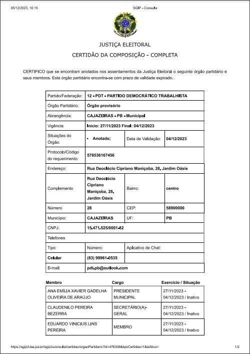 A composição da diretoria destituída incluía figuras estratégicas como Claudenilo Pereira Bezerra, Eduardo Vinícius Lins Pereira, Jefferson Gomes Rocha, Guilherme José de Oliveira Quirino, Luiz Gonzaga de Oliveira Neto e Maria Luiza Araújo Dantas. Esses membros desempenhariam papéis fundamentais, conforme anunciado pelo próprio partido, na condução das atividades da legenda.