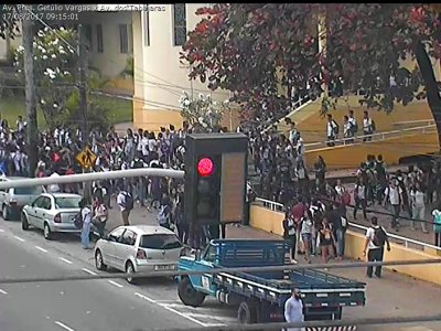 Os estudantes ocuparam a Avenida Getúlio Vargas, sentido bairro Centro, e deixaram o trânsito lento no local.