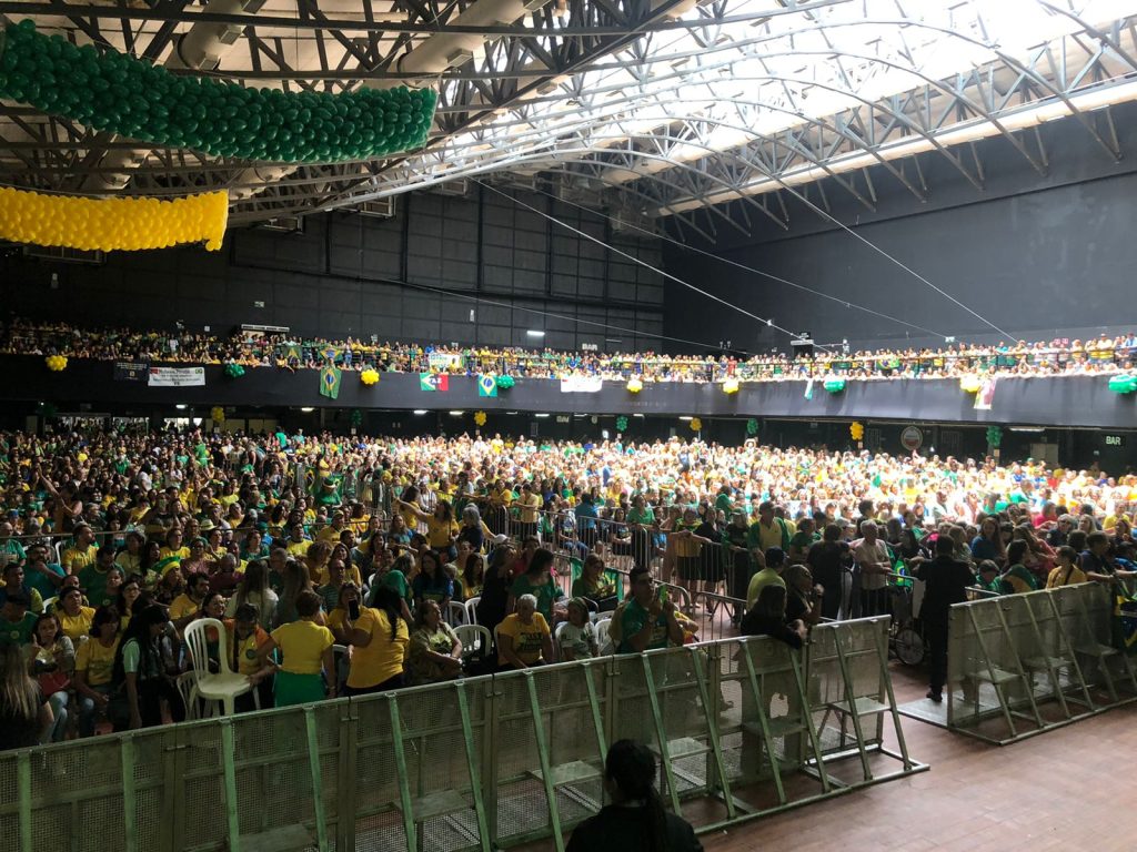 Centenas de apoiadoras da campanha bolsonarista estão presentes ao ato. Apesar de ser um evento direcionado exclusivamente ao público feminino às mulheres, vários homens estão presentes.