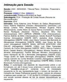 O Tribunal de Contas do Estado da Paraíba (TCE-PB) emitiu uma intimação para o ex-prefeito de Sapé, Flávio Roberto Malheiros Feliciano, exigindo esclarecimentos sobre irregularidades que ultrapassam os R$ 2 milhões em um contrato firmado com a empresa Geo Limpeza Urbana LTDA durante sua gestão, em 2016. Além do ex-prefeito, os antigos gestores do Fundo Municipal de Saúde (FMS), Geminiano Luiz Maroja Limeira Filho e Anna Katarina Lima Pinheiro de Galiza, também foram convocados a comparecer perante o pleno do Tribunal no dia 30 de abril.