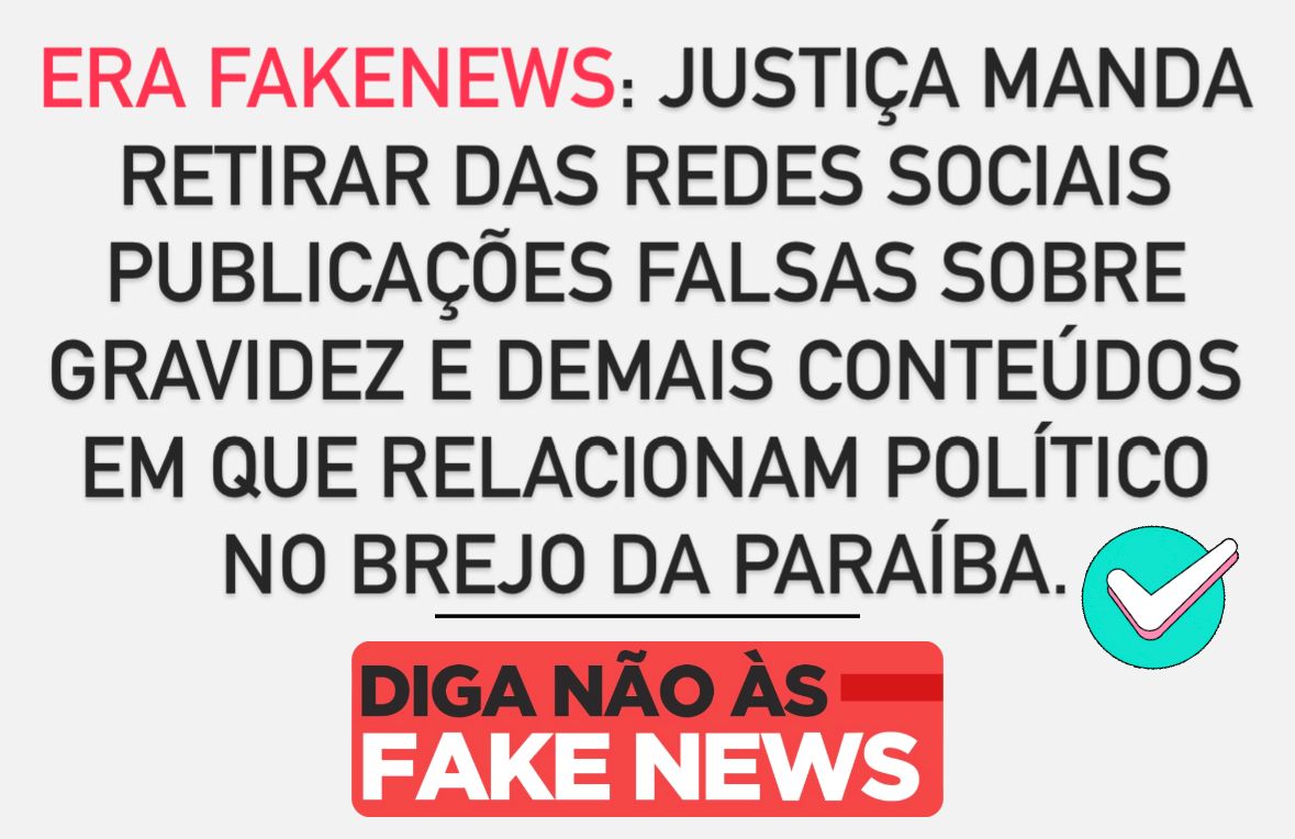 Um caso polêmico ganhou as mídias sociais nos últimos dias, que seria a possível gravidez de uma servidora de uma determinada prefeitura do Brejo da Paraíba, bem como outros conteúdos e informações, agora confirmada pela justiça como FakeNews e inverídicos.