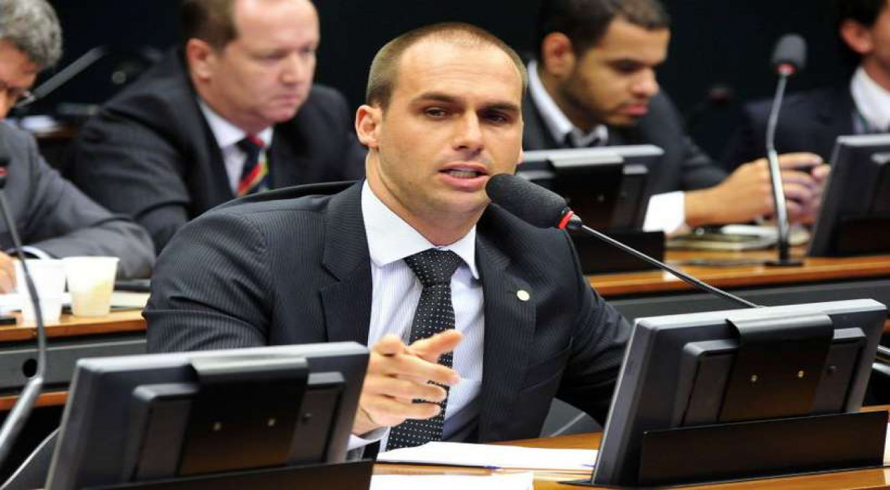 Questionado sobre se o PSL poderia apoiar algum nome do MDB para o comando do Senado, Eduardo Bolsonaro afirmou que a sigla pode avaliar a possibilidade, mas garantiu que se o escolhido for Renan Calheiros (MDB-AL) o partido será contrário.