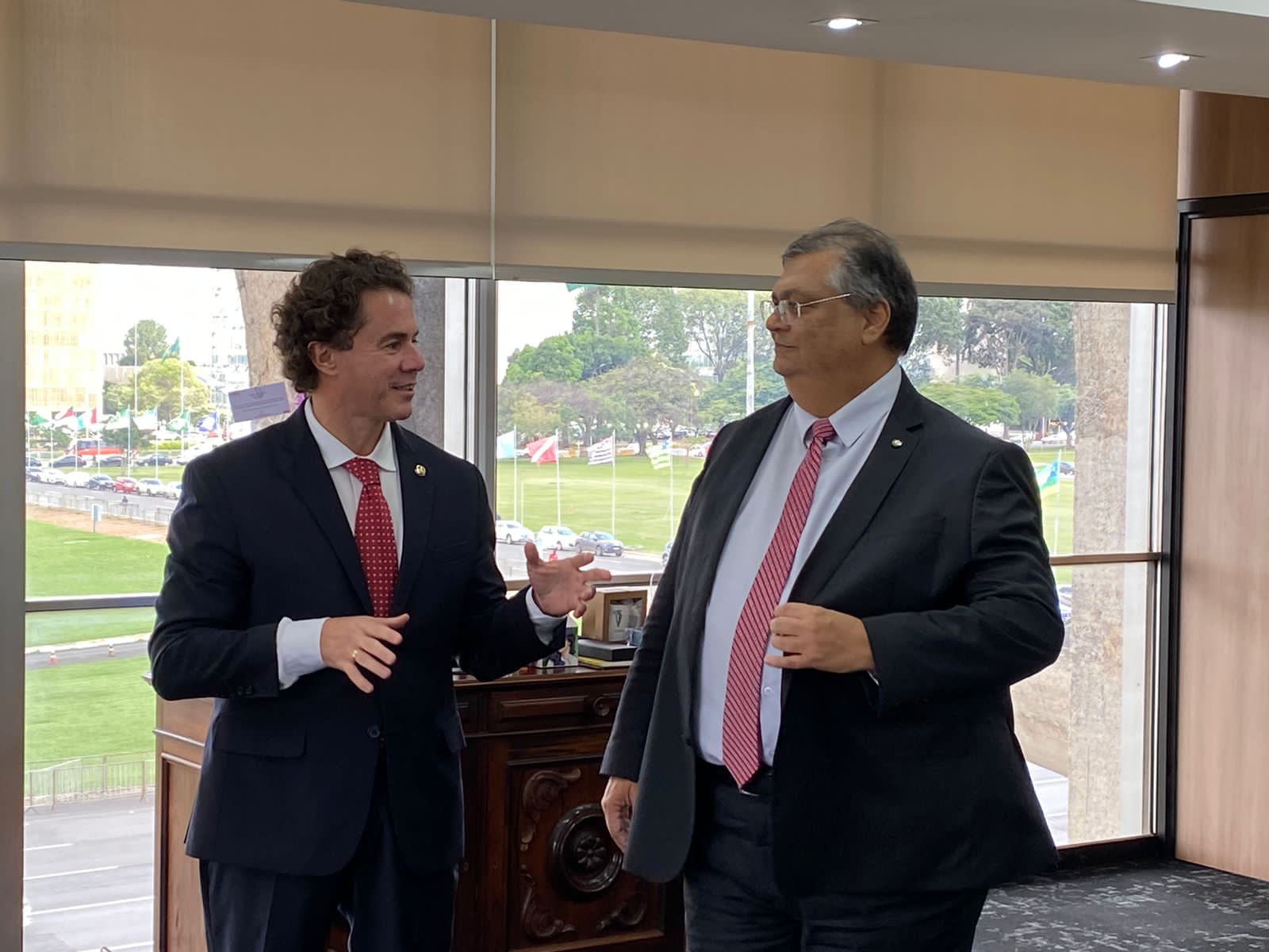 O Presidente em exercício do Senado Federal, Senador Veneziano Vital do Rêgo (MDB-PB) esteve nesta quarta-feira (29), juntamente com o deputado estadual Taciano Diniz, em uma audiência com o Ministro da Justiça e Segurança Pública, Flávio Dino. O objetivo foi tratar de pleitos que envolvem a Paraiba.