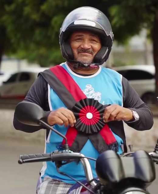 Nas imagens, uma costureira aparece confeccionando a faixa nas cores vermelha e preta, representando a faixa que Lucas recebeu das mãos do ex-governador João Azevêdo durante a cerimônia de transmissão.