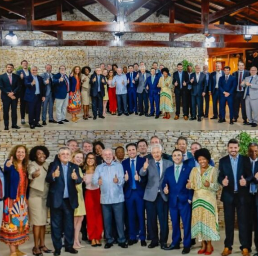 “Jantar com líderes da Câmara dos Deputados e o Presidente Lula. Diálogo e respeito entre poderes para Brasil avançar”, disse Hugo por meio das suas redes sociais.