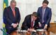 O presidente da Câmara Municipal de João Pessoa (CMJP), Dinho Dowsley (PSD), e o presidente da Câmara dos Deputados, Hugo Motta (Republicanos), assinaram, nesta quarta-feira (1º), o protocolo de intenções para a criação da Rede Legislativa Metropolitana.