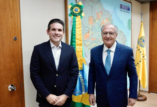Hugo Motta e Geraldo Alckmin falaram sobre os projetos do Programa Acredita Exportação Fonte: Agência Câmara de Notícias