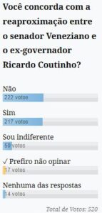 A pergunta foi feita da seguinte forma: Você concorda com a reaproximação entre o senador Veneziano e o ex-governador Ricardo Coutinho?