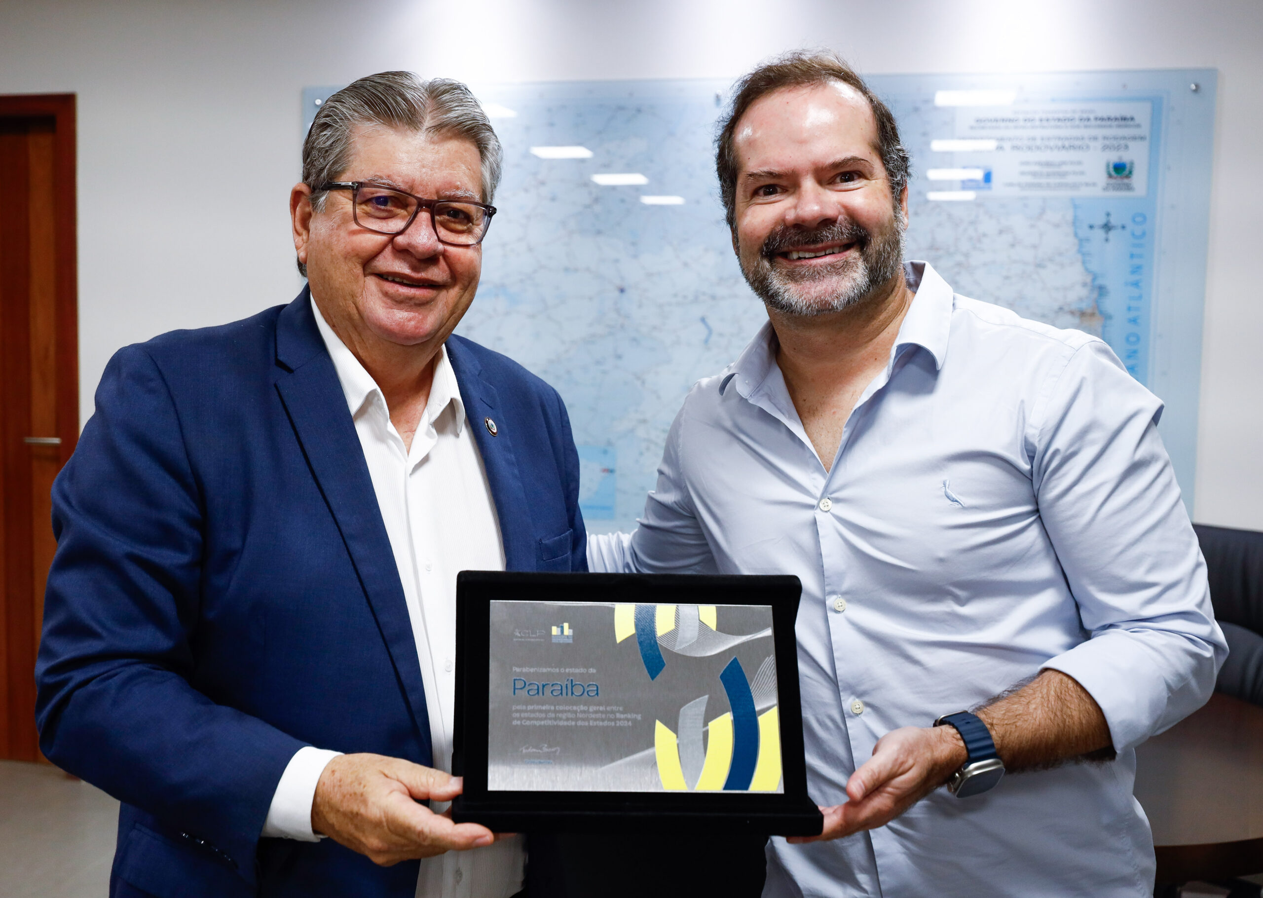 O governador João Azevêdo recebeu, na manhã desta quinta-feira (20), na Granja Santana, em João Pessoa, a placa do Centro de Liderança Pública (CLP) que reconhece a Paraíba como o estado mais competitivo do Nordeste. A entrega foi feita pelo diretor presidente do CLP, Tadeu Barros.