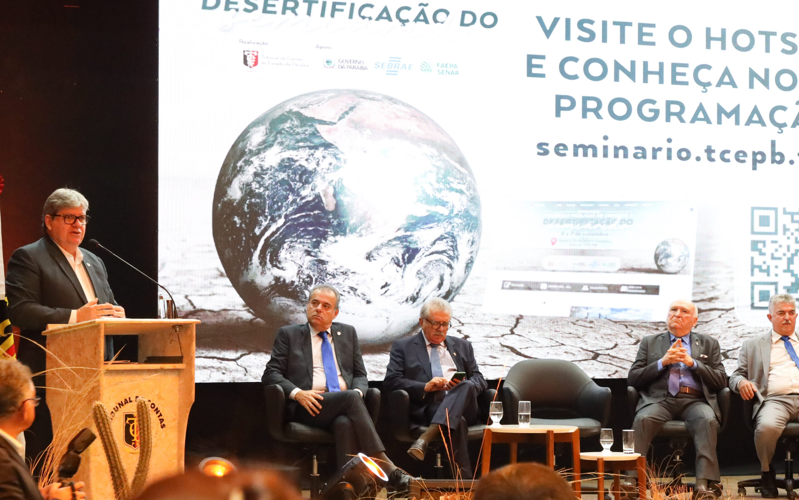 O governador João Azevêdo participou, nesta segunda-feira (6), no Tribunal de Contas do Estado da Paraíba (TCE-PB), em João Pessoa, da abertura do “Seminário de Políticas Públicas de Combate à Desertificação do Semiárido”, ocasião em que destacou as ações do Governo do Estado para o enfrentamento da situação com a garantia das condições necessárias para as famílias permanecerem na região.