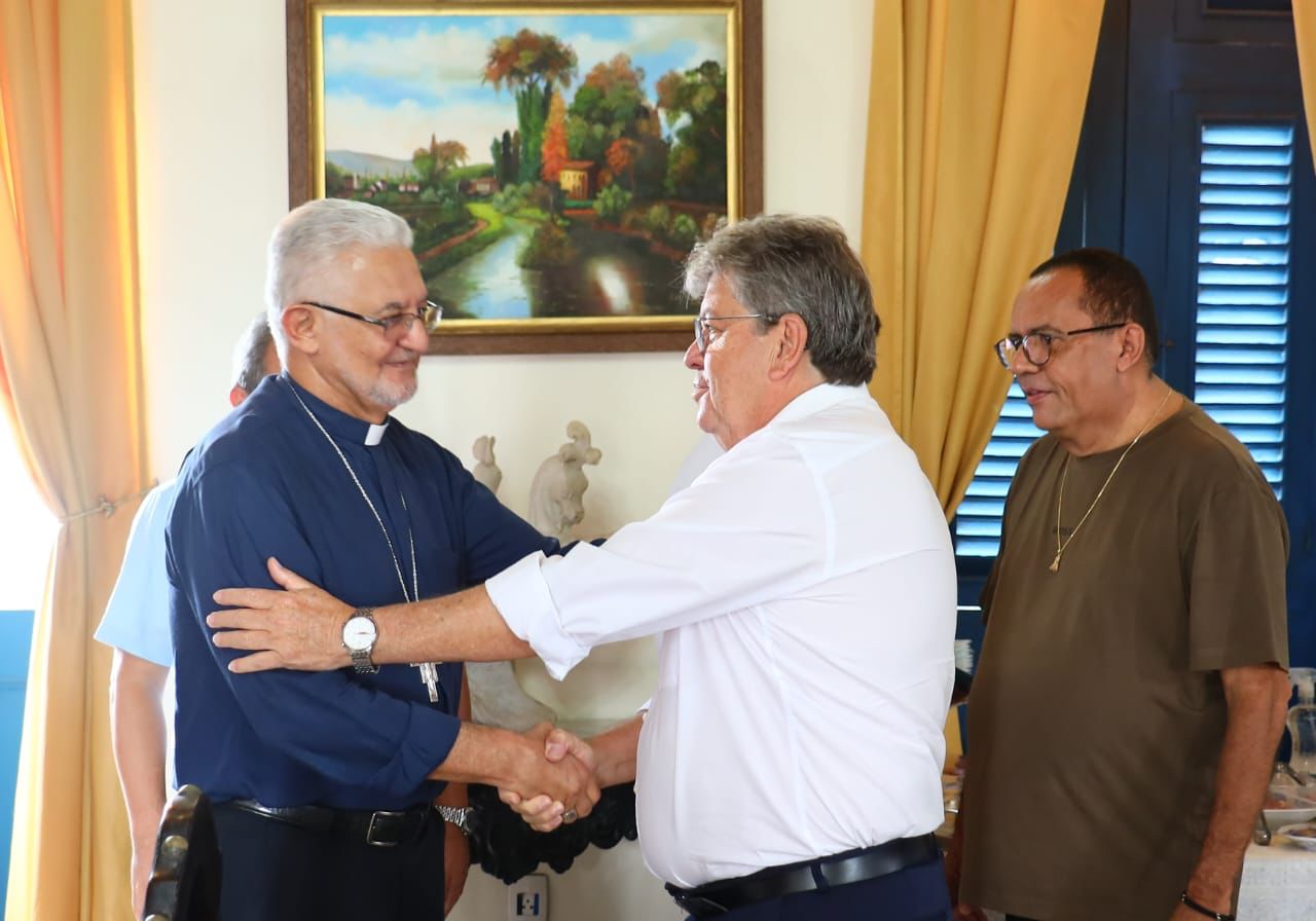 Candidato do PSB, o governador João Azevêdo se reuniu, na manhã desta quinta-feira (13), para um café da manhã com o Arcebispo Dom Delson e um grupo de padres e líderes religiosos para dialogar sobre demandas e reafirmar compromissos junto à Arquidiocese da Paraíba.