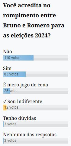 Entretanto, para 35% existe sim uma quebra na relação, embora Rodrigues nunca tenha confirmado ou insinuado que faz ou fará oposição a Bruno.