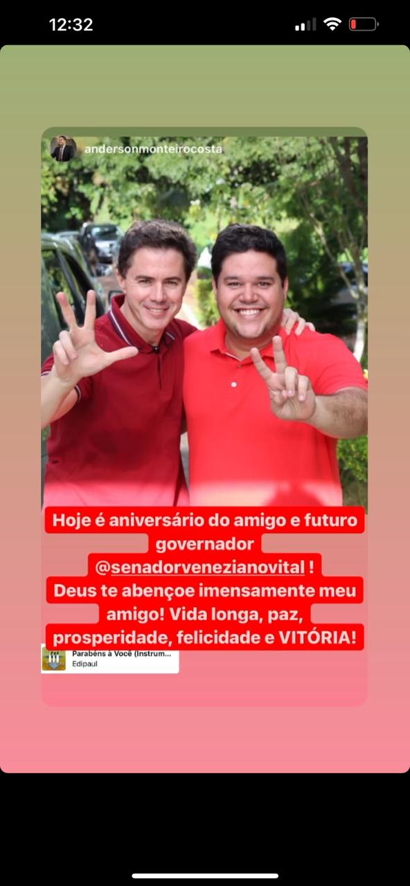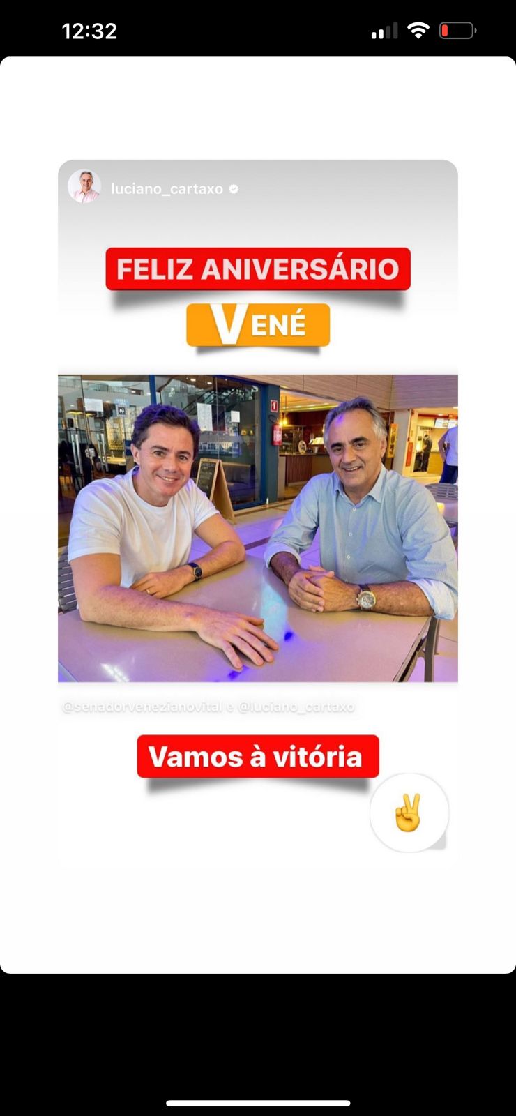 Assim como o ex-governador e pré-candidato ao Senado Ricardo Coutinho (PT). “Hoje é dia de comemorar o aniversário do companheiro de luta Veneziano. Vida longa. Que sigamos juntos para viver e ver a Paraíba sorrindo novamente!”, comentou Ricardo por meio das suas redes sociais. Veja: