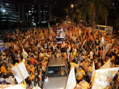 com o seu voto”, falou Efraim para uma multidão laranja.