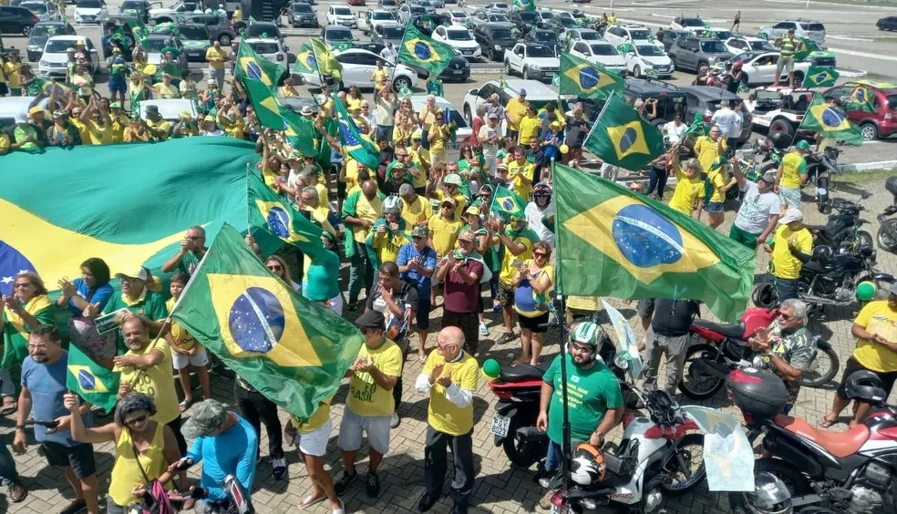 Vestidos de verde e amarelo, os militantes do político de extrema direita empunhavam bandeiras do Brasil. Eles percorreram uma distância de aproximadamente 10km com buzinaço. No ponto-final, um carro de som se posicionou em frente a um supermercado da área e, no local, cantaram o hino nacional.