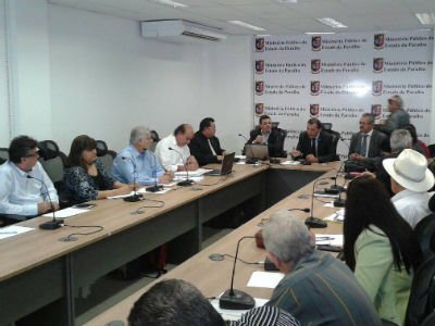 Participaram da reunião, o procurador de Justiça Francisco Sagres, o procurador- geral de Justiça, Bertrand de Araújo Asfora, e o responsável pelo projeto da Transposição, Antônio de Pádua.