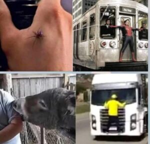 O homem subiu no caminhão, que não parou, e levou o manifestante por vários quilômetros. A imagem rendeu montagens dos mais diversos estilos. Confira algumas: