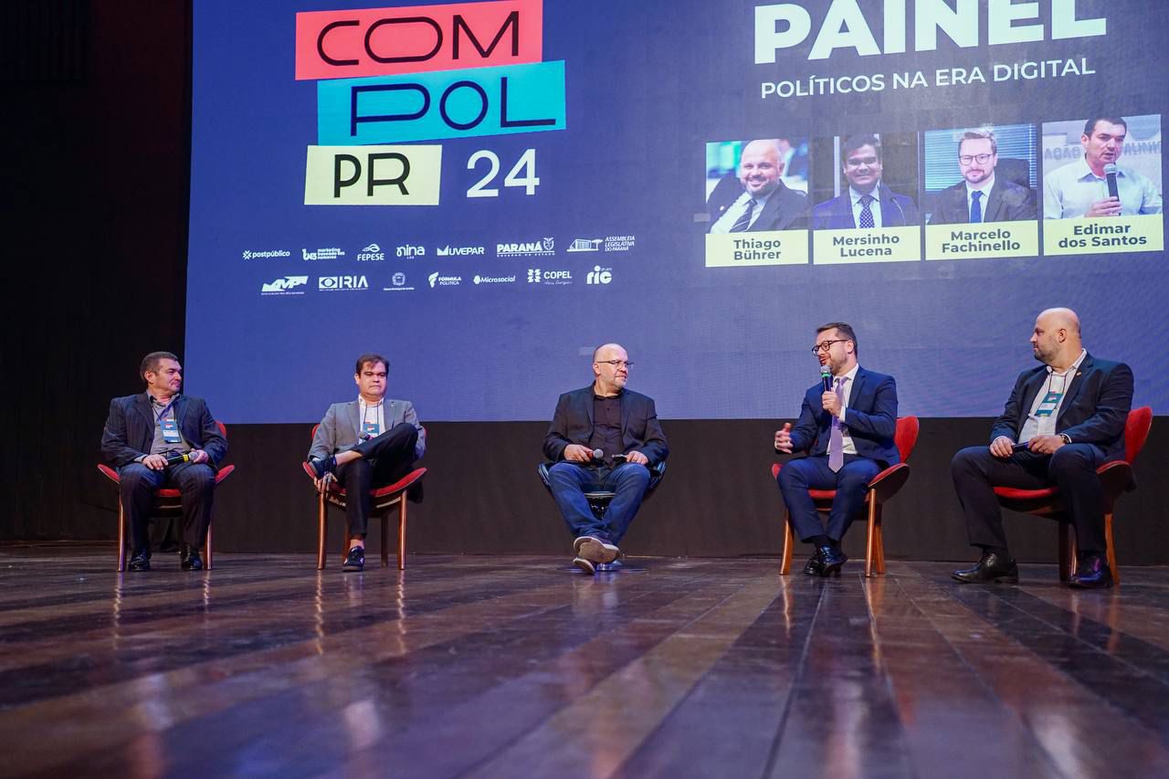 No painel sobre a Era Digital, Mersinho esteve ao lado do deputado estadual Thiago Buhrer (União/PR), do presidente da Câmara Municipal de Curitiba (CMC), Marcelo Fachinello (Pode) e do prefeito de Santa Cecília do Pavão, Edimar dos Santos, presidente da Associação dos Municípios do Paraná.