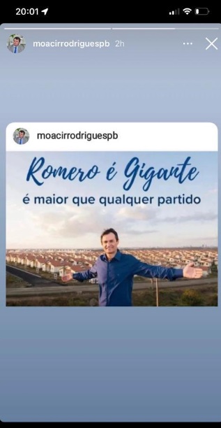 Num post ontem (29), o deputado estadual Moacir Rodrigues (PSL), manifestou sua solidariedade ao seu irmão o ex-prefeito de Campina Grande Romero Rodrigues, que teve o comando paraibano do PSD tirado de suas mãos e entregue a senadora Daniella Ribeiro. Por meio das suas redes sociais, Moacir deu um respot, numa arte que destaca as qualidades do irmão.
