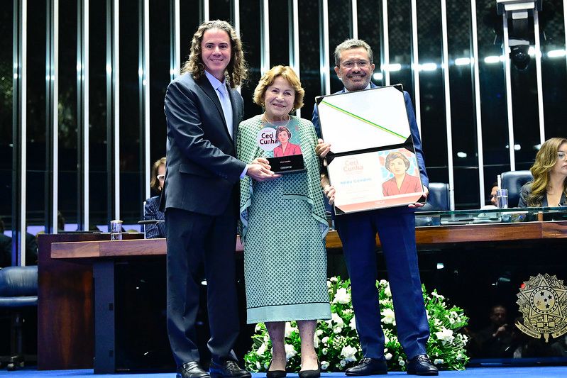 A ex-Senadora e ex-Deputada Federal Nilda Gondim (MDB-PB) foi homenageada pelo Senado Federal com a Comenda Ceci Cunha. A homenagem foi instituída pela Casa para reconhecer o trabalho de mulheres que se destacam na política, sobretudo em ações ligadas ao enfrentamento da violência contra a mulher. Participaram da homenagem o Senador Veneziano Vital do Rêgo (MDB-PB) e o Presidente do Tribuna de Contas da União – TCU, Vital do Rêgo Filho, filhos da homenageada.