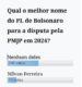Questionados sobre ‘Qual o melhor nome do PL, partido do ex-presidente da República Jair Bolsonaro, para disputar a Prefeitura Municipal de João Pessoa em 2024, a maioria dos participantes preferiu deixar todos de fora.