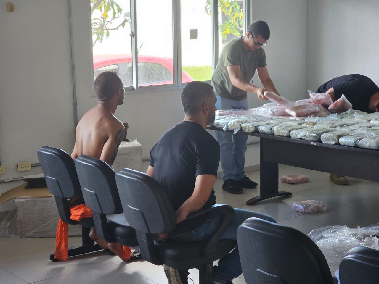 Os dois homens foram presos em flagrante e devem passar por audiência de custódia nesta sexta-feira (1º). A mulher, que está grávida e não tinha ligação comprovada com o tráfico, foi liberada após sentir dores abdominais durante o procedimento.