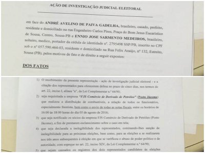 Na última quinta-feira (18), Advogados da Coligação “Sousa Unida” que tem Fábio Tyrone (PSB), e Zenildo Oliveira (PSD), candidatos a prefeito e Vice, ajuizaram uma Ação de Investigação Judicial Eleitoral (AIJE) contra a Coligação ‘Sou Mais Sousa” do prefeito André Gadelha (PMDB), e Ennio Medeiros (PMDB), vice junto ao Cartório da 35ª ZE.