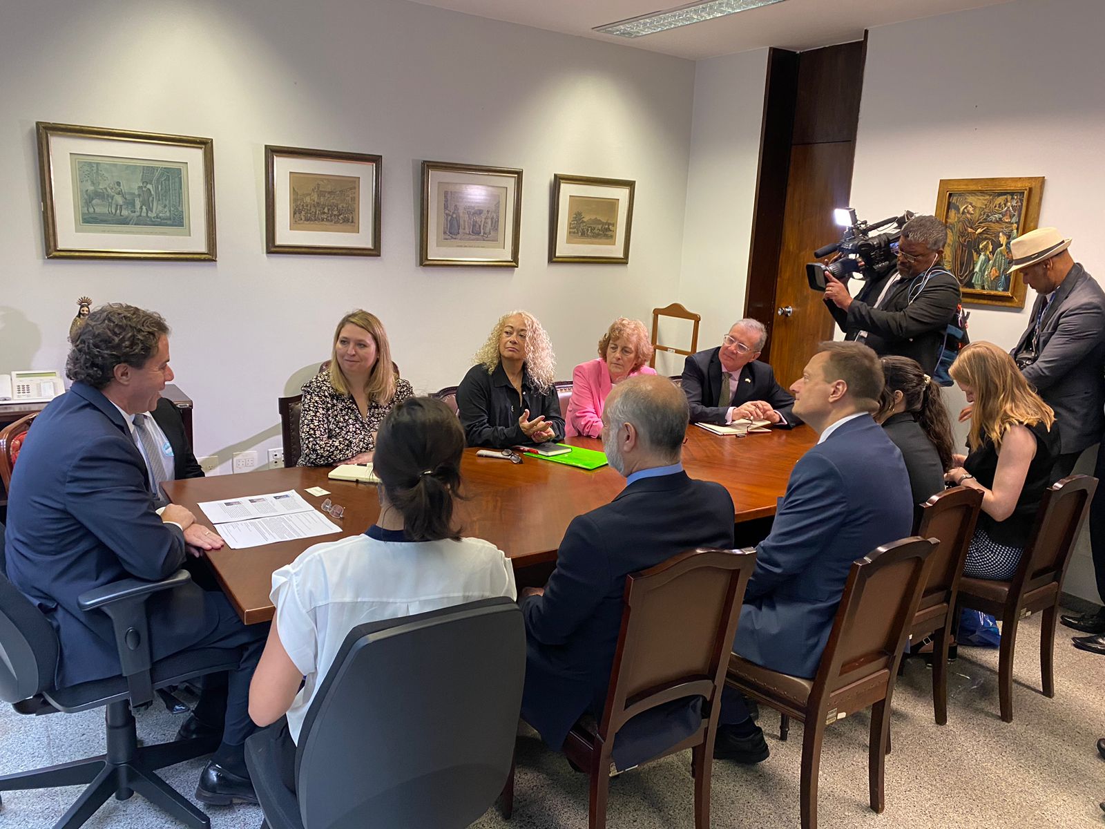 Em nome do presidente da Casa, Senador Rodrigo Pacheco (PSD-MG), Veneziano deu boas vindas à comitiva e coordenou uma reunião para tratar de questões internacionais de interesse mútuo, a exemplo da preservação da Amazônia, economia, educação, questões climáticas, defesa de povos indígenas e direitos humanos, democracia e luta contra a corrupção, comércio e energia.
