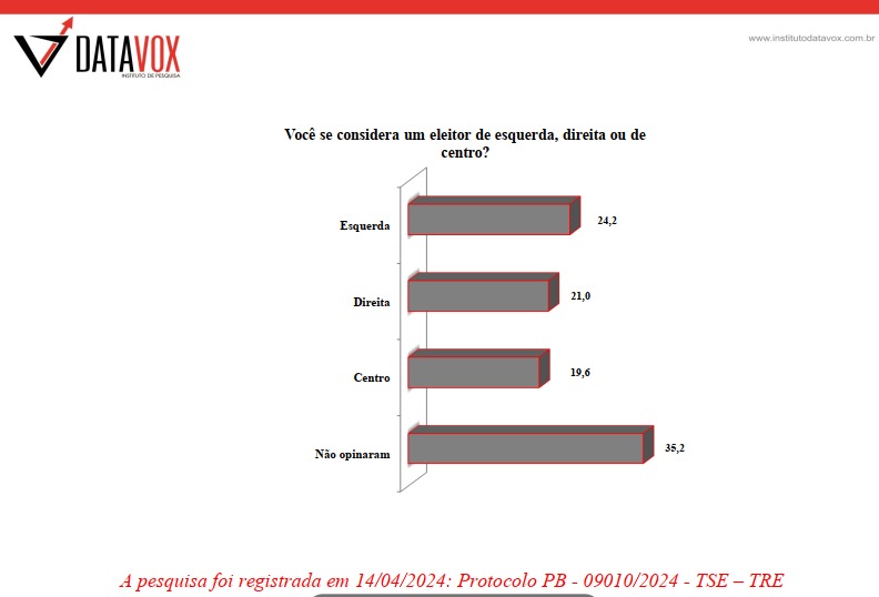 Se consideram de esquerda 24,2% dos eleitores, enquanto 21% se apresenta como de direita. Os que se consideram de Centro somam 19,6%.