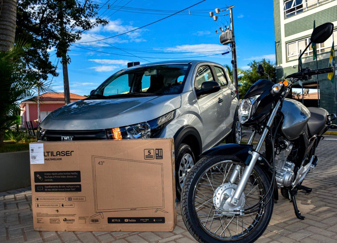 A prefeitura vai sortear no dia 15 de dezembro, aniversário de emancipação política da cidade, um carro e uma moto 0KM e TV,s. Participarão do sorteio, única e exclusivamente, os proprietários ou possuidores do imóvel que comprovarem a quitação total do IPTU e da TCR até o presente exercício(2023), seja em cota única ou em parcelas, até a data de vencimento fixada.