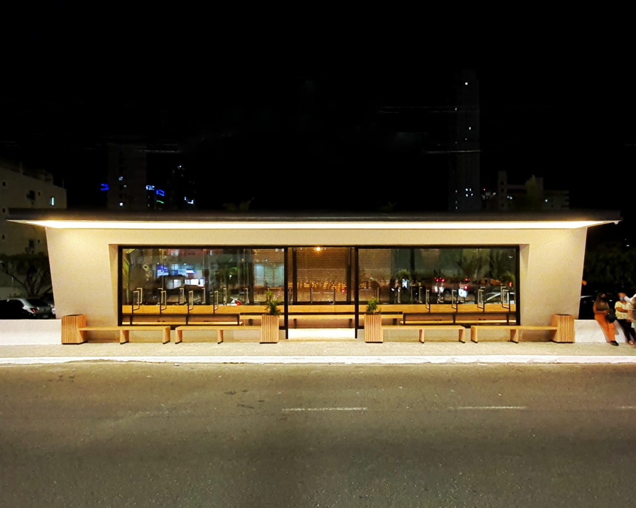Além de climatizado, o novo abrigo é espaçoso, comportando 16 pessoas sentadas na área externa, 40 pessoas sentadas na área interna e dois cadeirantes. Coberto, os usuários permanecerão protegidos da exposição do sol ou chuva, além disso, um monitor estará informando, em tempo real, os horários e linhas que estarão passando pelo local.